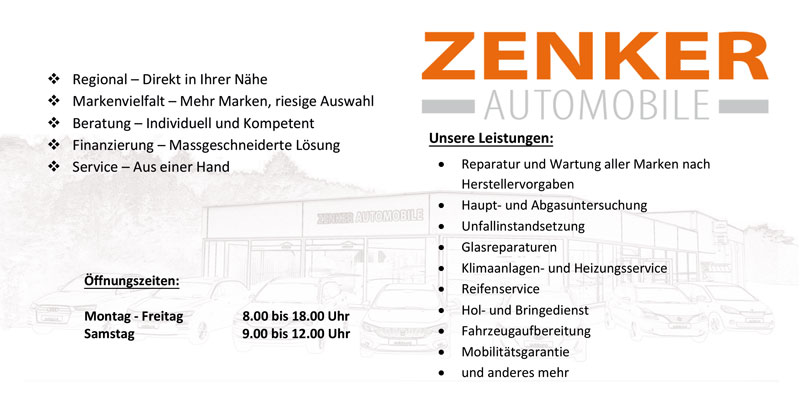 Telefon: 03763 3065, Telefax: 03763 3859, E-Mail: info@zenker-automobile.de